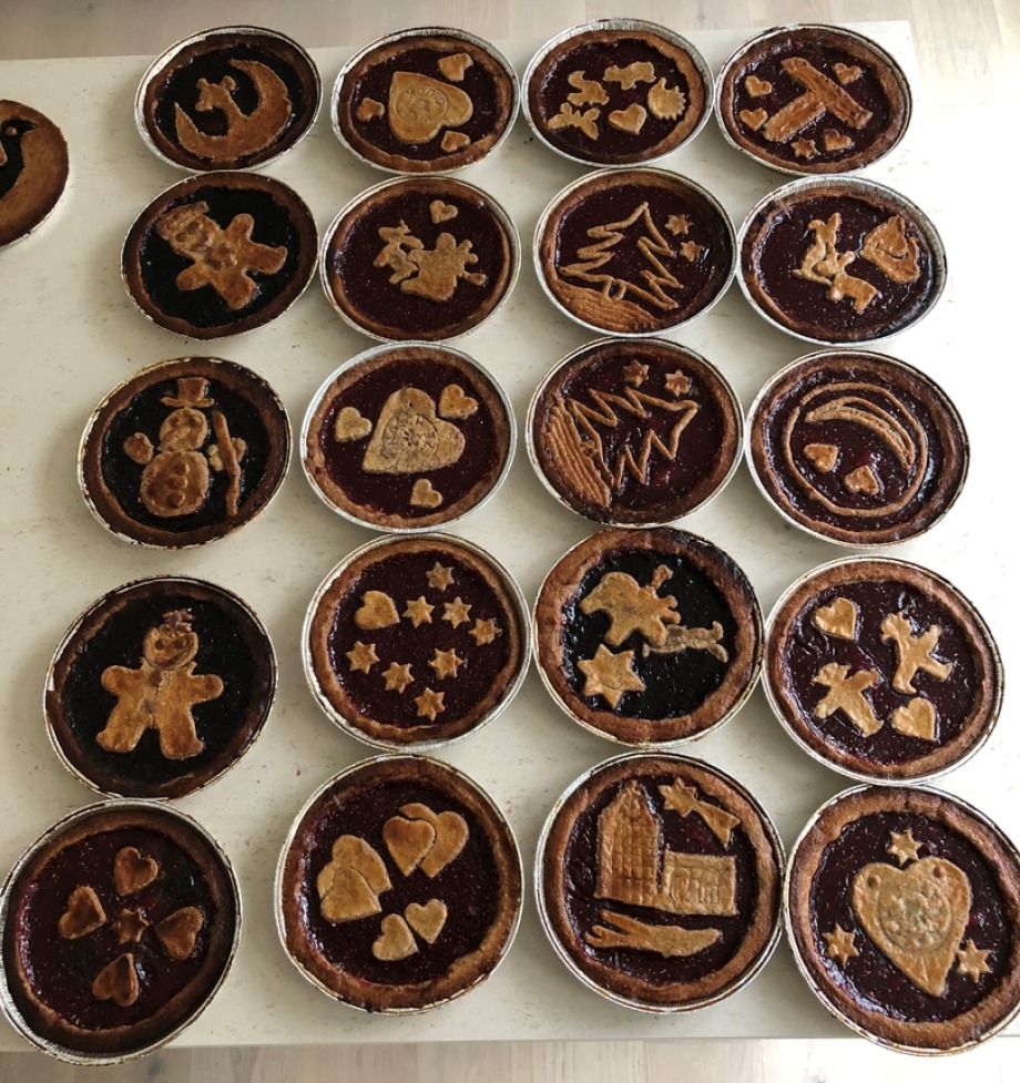 Hagnaus Väter backten 2016 für den Stand des Kinderhaus Hagnau auf dem Adventsmarkt 23 individuell gestaltete Linzertorten.